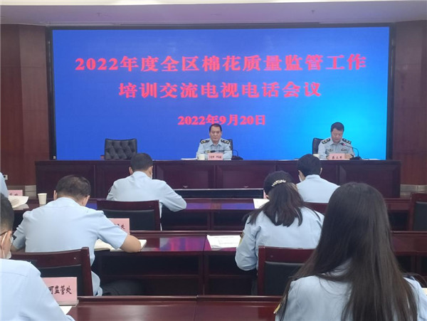 为切实做好棉花质量监督和公证检验,保障棉农合法权益,维护棉花市场秩序,助力新疆棉花高质量发展,日前新疆维吾尔自治区市场监管局召开2022年度全疆棉花质量监管工作培训交流电视电话会议。党组副书记、局长多里坤·阿吾提出席会议并讲话,总工程师蔡立军主持会议。