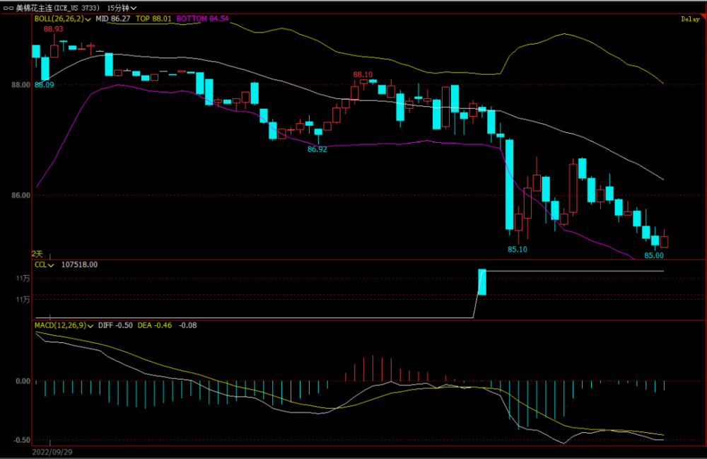 9月28日,ICE10月合约90.44美分,涨40点;12月合约88.49美分,涨40点;成交量30865手,减少2722手。ICE棉花期货盘中继续下探新低,随后美元指数回落以及美股和油价上涨帮助棉价收复失地并最终全盘小幅收涨。分析人士认为,美元指数在连续冲高之后面临调整,有利于棉价下探筑底,市场关注今晚的美棉出口周报和本周末飓风登陆美国的情况。