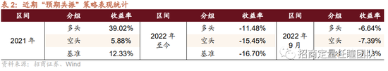 2021年,“预期共振”行业轮动策略获得显著超额收益,基于中信一级行业的多头组合全年收益为39.02%(空头组合的收益为5.88%,全行业等权基准收益为12.33%)。2022年初至今,行业轮动策略多头组合收益为-11.48%,全行业等权基准收益为-16.70%。2022年9月,策略多头组合收益为-6.64%,全行业等权基准收益为-7.18%。