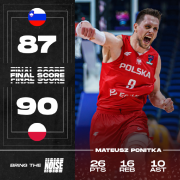 2022年9月15日消息:北京时间9月15日,男篮欧锦赛八进四淘汰赛,波兰男篮90-87险胜斯洛文尼亚,51年来首次进入四强。 欧锦赛前,波兰男篮仅在实力榜排名第15,是所有进入八强的球队